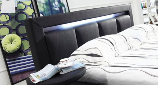 Oslo bed has built in light conveniently placed on the headboard providing smooth ambiance and It has Two night stands .This Round bed is well crafted with unique curves that give your bedroom a contemporary look that is outstanding. The structure is wooden with the upholstery in soft Synthetic leather for a new age look. Mattress is supported by slats (Metal Frame and Wooden Ribs). This bed requires US standard King or queen size mattress, Mattress is not included.