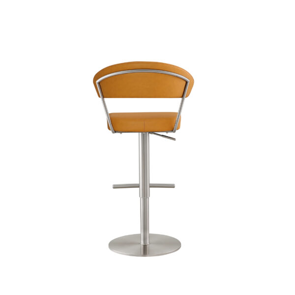 Zulu Barstool is crafted with a High quality Stainless Steel Frame and Footrest for Sturdy, Structural Integrity Support. Upholstered in Plush, luxurious Eco Leather. The Seat Cushions and Backs are created for Optimal Comfort. It features a Gas Lift Adjustable Height Seat with Full Swivel Seat Capability.  Color: Ginger Yellow